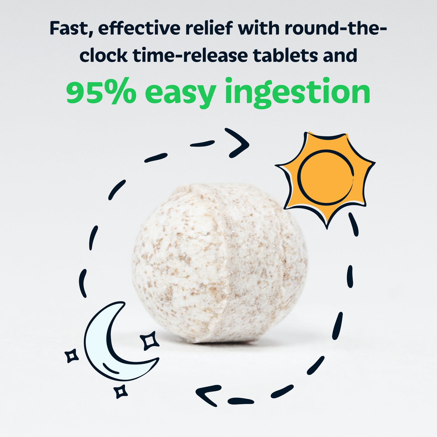 Our tiny but mighty tablets can be mixed or crushed into their food. They're so small that even the pickiest eaters won't notice. For best results, your dog should take them daily for at least 30 days.